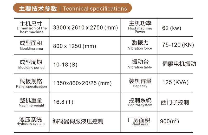 成型周期 (s) | 10-18(磚型區(qū)別) | 液壓系統(tǒng) | 編碼器伺服液壓控制 |